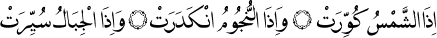 1 Güneş dürülüp toplandığı, • Yıldızlar döküldüğünde, • Dağlar yürütüldüğünde. (Tekvir Sûresi: 1-3.)