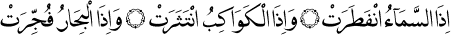 2 Gök yarıldığı zaman. • Yıldızlar saçıldığı zaman. • Denizler kaynayıp birbirine karıştığı zaman. (İnfitar Sûresi: 1-3.)