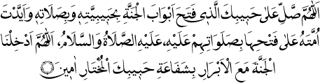 3 Allah’ım! Habîb oluşu ve duâsıyla Cennetin kapılarını açan ve o kapıları ona olan salâvâtlarıyla açmaları için ümmetini desteklediğin Habîbine rahmet eyle. Ona salât ve selâm olsun.