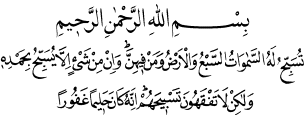 Yedi gökle yer ve onların içindekiler Onu tesbih eder. Hiçbir şey yoktur ki Onu övüp Onu tesbih etmesin; lakin siz onların tesbihini anlamazsınız. Şüphesiz ki O Halîmdir, cezâ vermekte acele etmez; Gafûrdur, günahları çokça bağışlar. (İsrâ Sûresi, 17:44.)