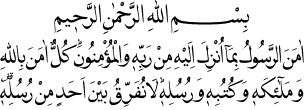 Peygamber, kendisine Rabbinden indirilen Kur’ân’ı tasdik edip ona îmân etti. Mü’minler de onunla beraber îmân ettiler. Onların hepsi Allah’a, meleklerine, kitaplarına ve peygamberlerine îmân etti. Onlar, ’Biz Allah’ın peygamberlerinden hiçbirini ayırmayız; birine inandığımız gibi hepsine de inanırız’ diyerek îmân getirdiler. Bakara Sûresi, 2:285.