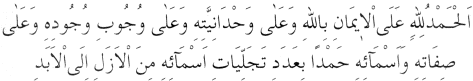 Allah’a iman için ve vahdaniyeti için ve vücub-u vücudu için ve sıfâtı ve esmâsı için, ezelden ebede bütün esmâsının tecelliyâtı adedince Allah’a hamd olsun.
