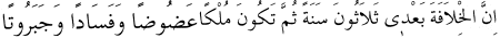Benden sonra hilâfet otuz sene sürecek, ondan sonra da saltanat şeklini alacak; ceberût ve fesâd-ı ümmet meydan alacak. Müsned, 5:220, 221, 4:273; Kadı Iyâz, eş-Şifâ, 1:340.