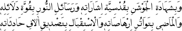 Yani, "Kur’an-ı Mucizü’l-Beyan, hadsiz hakikatler ve hüccetleriyle risaletine, sadıkıyetine şahadet eder."