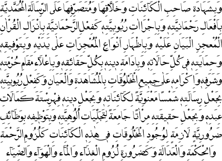 Pekçok kudsi şehadetleri ihtiva eden, bu kâinatta tasarruf ederek zerrattan seyyerata kadar bütün tahavvülat ve harekat ve sekenat ve hayat ve memat gibi bütün tasarrufat emriyle, iradesiyle, kuvvetli bulunan Zat-ı Vacibü’l-Vücudun icraat-ı rububiyeti ve ef’al-i Rahmaniyeti cihetinde risalet-i Muhammediyeye (a.s.m.) mukaddes şehadetine işaret eden, bu gelen Arabi fıkradır: