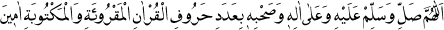 1 Allah’ım, okunan ve yazılan Kuranın harfleri adedince ona, Aline ve Ashabına salat ve selam eyle. Amin.
