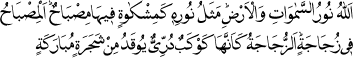 2 İllah göklerin ve yerin nurudur. Onun nurunun misali, bir lamba yuvası gibidir ki, onda bir kandil vardır. Kandil de cam fanus içindedir. Cam fanus ise, inci gibi parlayan bir yıldıza benzer ki, ne doğuya, ne de batıya ait olmayan mübarek bir ağacın yakıtından tutuşturulur. (Nur Suresi: 35. )