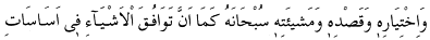 Bu fıkra, irade-i İlahiyenin delillerinden pekçok külli hüccetleri ihtiva eden birtek külli ve uzun delildir. Mealinin kısa bir tercümesi içinde irade ve ihtiyar ve meşiet-i İlahiyyeyi gayet kati ispat eden bir delili beyan ederiz. Hem, ilm-i İlahinin bütün mezkur delilleri, aynen iradenin dahi delilidir. Çünkü, her masnuda ilim ve iradenin beraber cilveleri, eserleri görünüyor.