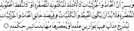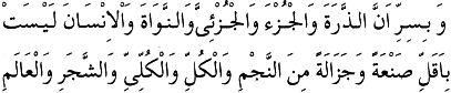 Yani, göz ve beyindeki acib vazifeleri gören bir zerre, bir yıldızdan; ve bir cüz, küll mecmuundan; mesela dimağ ve göz, insanın tamamından ve cüz’i bir ferd, hüsn-ü sanatça ve garabet-i hilkatçe umum bir neviden; ve bir insan, acib cihazlarıyla külli cins hayvandan; ve bir fihriste ve program ve kuvve-i hafıza hükmünde olan bir çekirdek, mükemmel masnuiyeti ve mahzeniyetçe koca ağacından; ve bir küçük kainat olan bir insan, kemal-i hilkati ve cemiyetli harika cihazlarının binler acib vazifeleri görecek bir tarzda mahlukiyeti kainattan aşağı değiller.