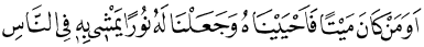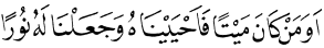 2 Ölü iken îmân ile diriltip nûra kavuşturduğumuz ve halk içinde o nûr ile doğru yolda yürüyen kimse... Enâm Sûresi, 6:122.