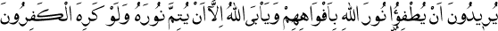 Allah’ın nûrunu üflemekle söndürmek isterler. Allah ise nûrunu tamamlamaktan başka birşeye râzı olmaz¦kâfirler isterse hoşlanmasınlar. Tevbe Sûresi, 9:32.