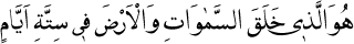 Gökleri ve yeri altı günde yaratan Odur." Hadîd Sûresi, 57,4.