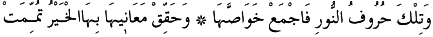 Yani, "İşte, Risale-i Nur’un sözleri, hurufları ki, onlara işaretler eyledik. Sen onların hassalarını topla ve mânâlarını tahkik eyle. Bütün hayır ve saadet onlarla tamam olur" der. "Hurufların mânâlarını tahkik et" karinesiyle mânâyı ifade etmeyen hecaî harfler murad olmayıp, belki kelimeler mânâsındaki "Sözler" namıyla risaleler muraddır.