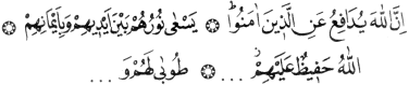 Muhakkak ki Allah, kâfirlerin şerrini îmân edenlerden uzaklaştırır.Hac Sûresi, 22:38.