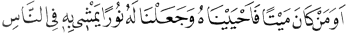 2 Ölü iken îmân ile diriltip nûra kavuşturduğumuz ve halk içinde o nûr ile doğru yolda yürüyen kimse... En’âm sûresi, 6:122.