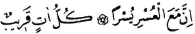 "Gerçekten zorlukla beraber bir kolaylık vardır." İnşirah Sûresi, 94:6. "Her gelecek şey yakındır." İbni Mâce, Mukaddeme:7.