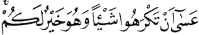 Belki sevmediğiniz şey hakkınızda hayırlıdır. (Bakara Sûresi: 216.)