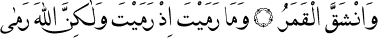 Ay yarıldı." Kamer Sûresi, 54:1. Attığın zaman da sen atmadın, ancak Allah attı." Enfâl Sûresi, 8:17.
