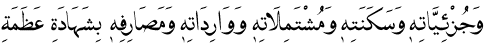 Işte, kâinatta câri olan teavün-ü umumî, seyyarattan tâ zîhayatın âzâ ve cihazat ve zerrât-ı bedeniyesine kadar kemâl-i intizamla cereyan eden muvazene-i âmme ve muhafaza-i şâmile; ve semavatın yaldızlı yüzünden ve zeminin ziynetli yüzünden tâ çiçeklerin süslü yüzlerine kadar kalem gezdiren tezyin; ve kehkeşandan ve manzume-i şemsiyeden tâ mısır ve nar gibi meyvelere kadar hükmeden tanzim; ve güneş ve kamerden ve unsurlardan ve bulutlardan tâ bal arılarına kadar memuriyet veren tavzif gibi pek büyük hakikatlerin, büyüklükleri nisbetindeki şehadetleri, kâinatın şehadetinin ikinci kanadını ispat ve teşkil ederler. Madem Risale-i Nur bu büyük şehadeti ispat ve izah etmiş; biz burada bu kısacık işaretle iktifa ederiz.