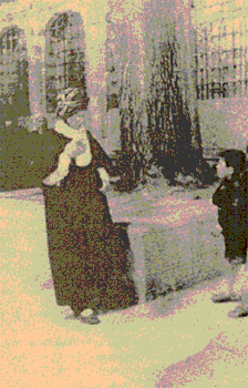 Üstad Hazretleri İstanbul Fatih Camii avlusunda bir çocukla konuşurken.