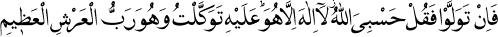 Ey Peygamber, eğer insanlar senden yüz çevirirse, sen de ki: "Allah bana yeter. Ondan başka ibâdete lâyık hiçbir ilâh yoktur. Ben Ona tevekkül ettim. Yüce Arşın Rabbi de Odur." (Tevbe Sûresi: 129.)